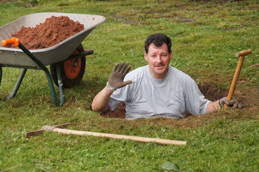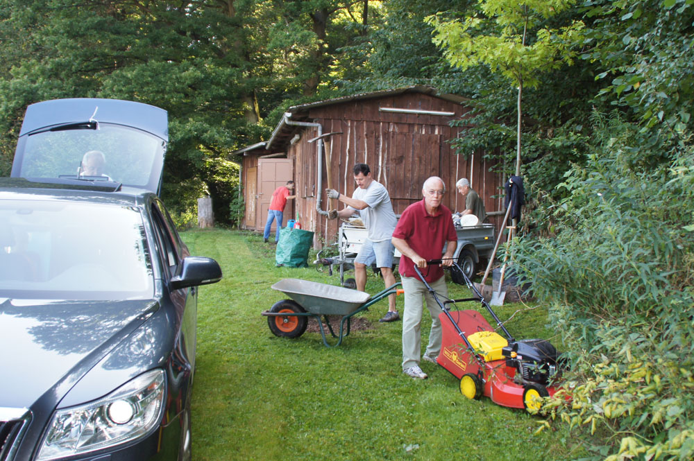 ... geschnitten, gemäht, gehackt, aufgeräumt, ein Schachbrett ausgegraben, das Loch für die Karl-Junk-Eiche gebuddelt, der Jahneichen-Gedenkstein geschrubbt und gut gegessen.