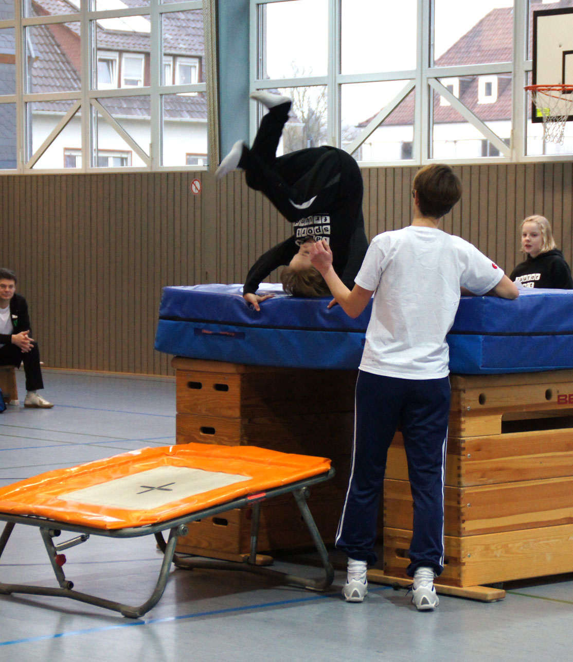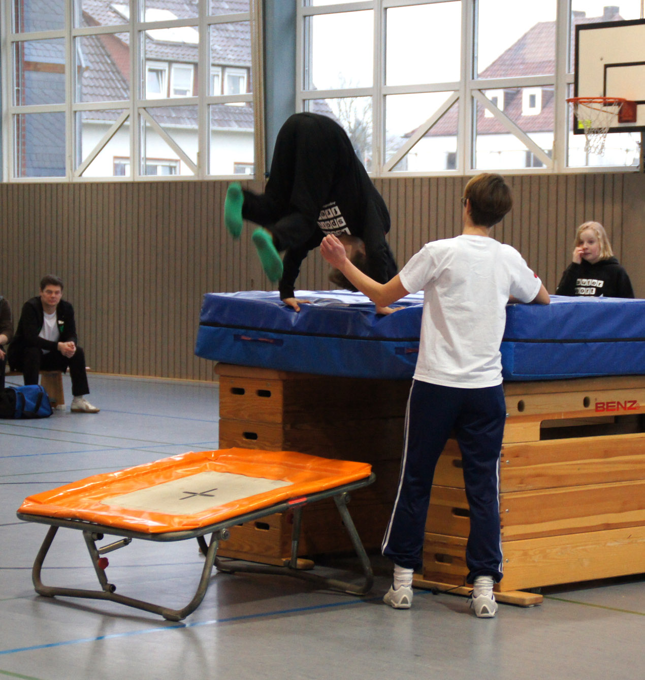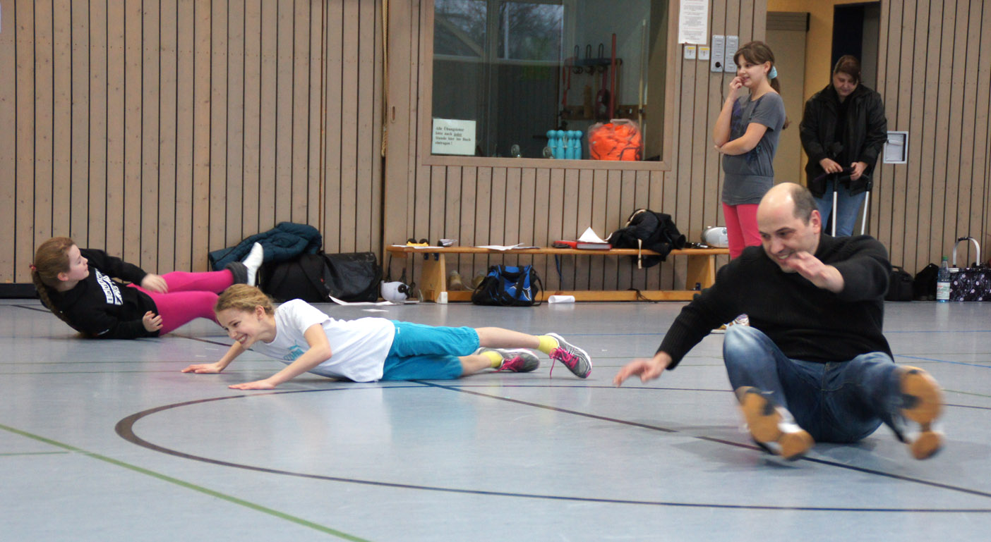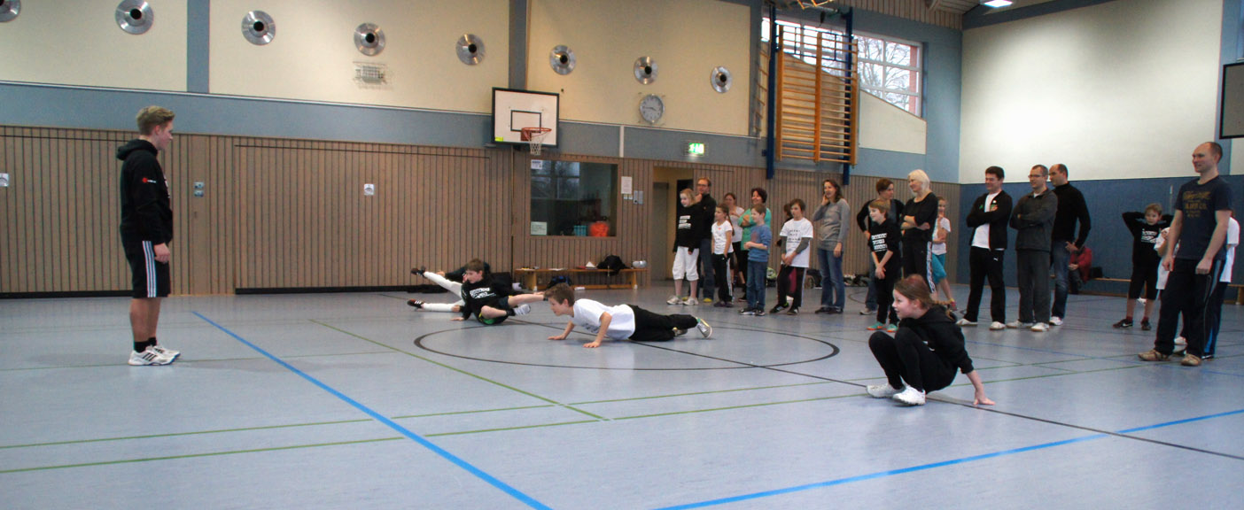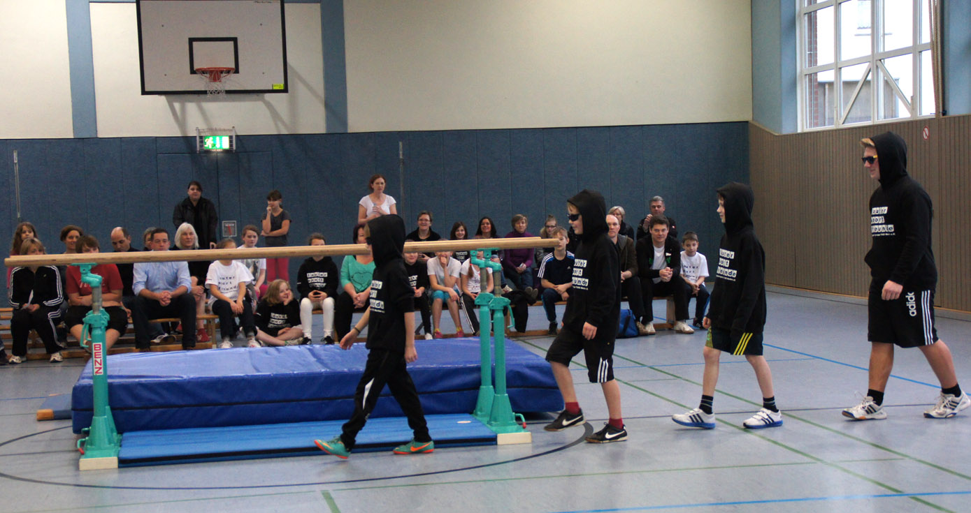 Nach einem kurzen Kennlernspiel und einem Aufwärmtraining nach 'Footballer' Art durften sich die Gäste kurz ausruhen, um den Darbietungen am Minitrampolin und Barren zuzusehen, bevor sie dann im Gefängnisausbruch gegen die 'Elite' antreten mussten. Dabei muss den Gästen sogar der Gewinn (wenn auch im Hundertstelbereich) zugesprochen werden.