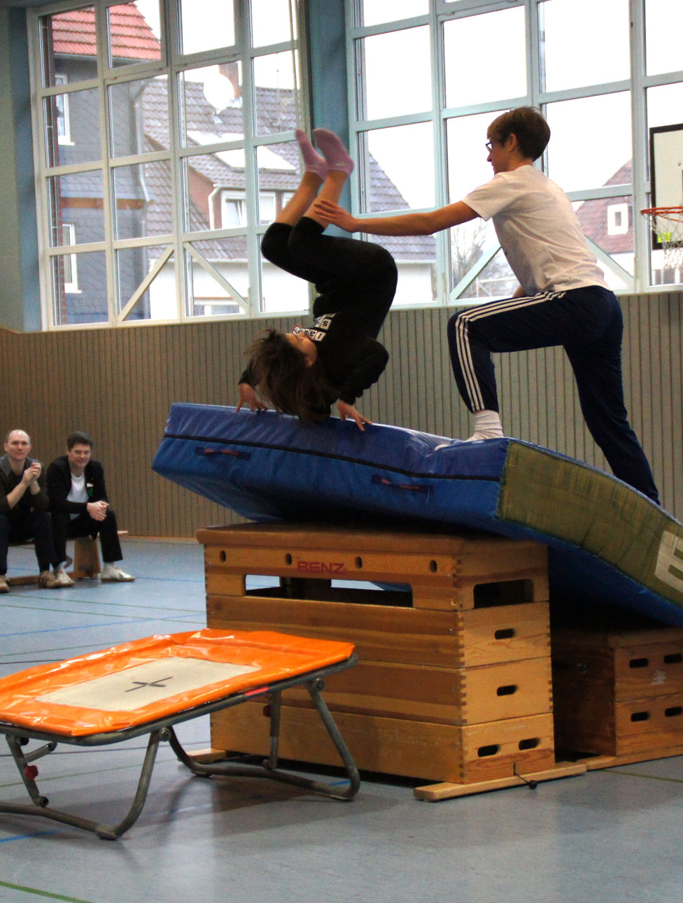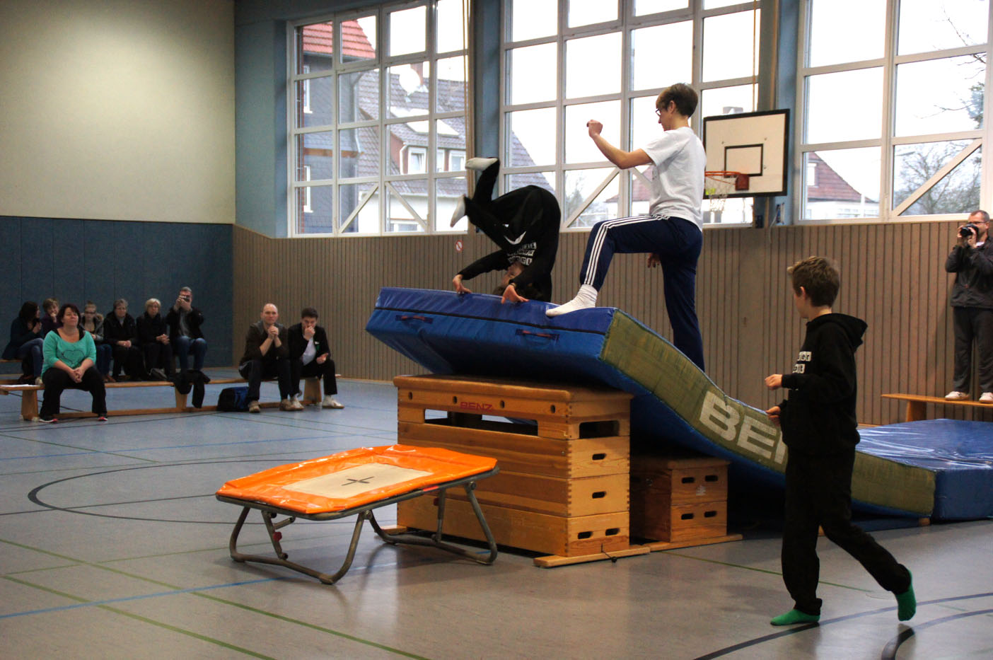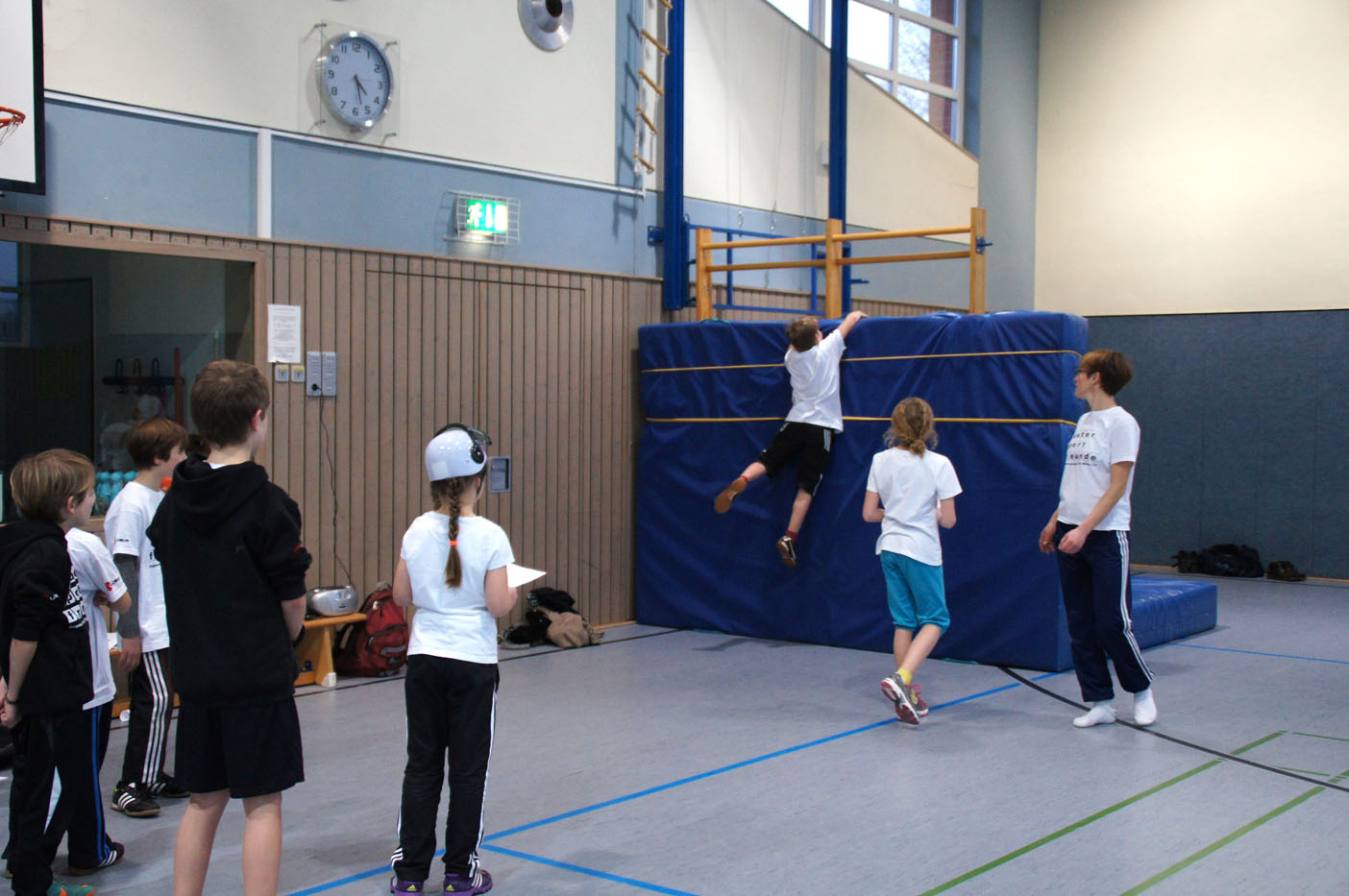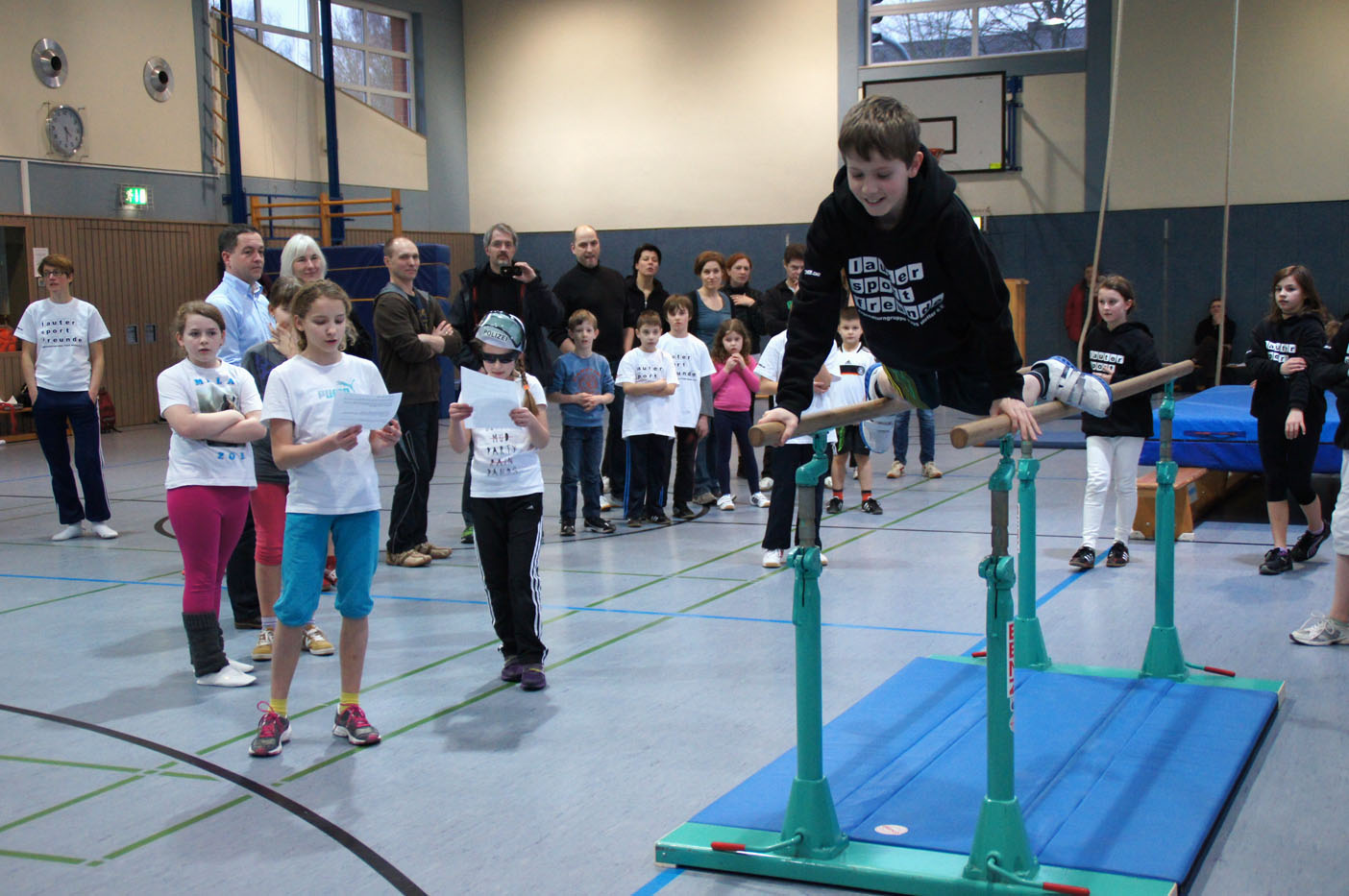 Nach einem kurzen Kennlernspiel und einem Aufwärmtraining nach 'Footballer' Art durften sich die Gäste kurz ausruhen, um den Darbietungen am Minitrampolin und Barren zuzusehen, bevor sie dann im Gefängnisausbruch gegen die 'Elite' antreten mussten. Dabei muss den Gästen sogar der Gewinn (wenn auch im Hundertstelbereich) zugesprochen werden.