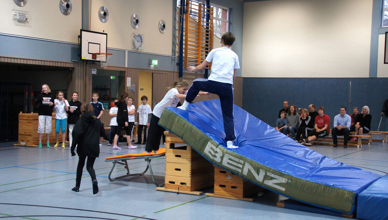 Was als 'Testgruppe' für alle über 9-jährigen an Turnen, Bewegungsspielen und Trendsportarten Interessierten begann, hat sich zu einer fast 15 Mitglieder zählenden Gruppe aus Mädchen und Jungen im Alter von 9-14 Jahren gemausert, die sich wöchentlich trifft.
