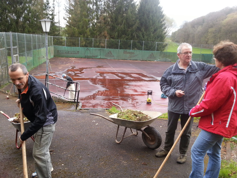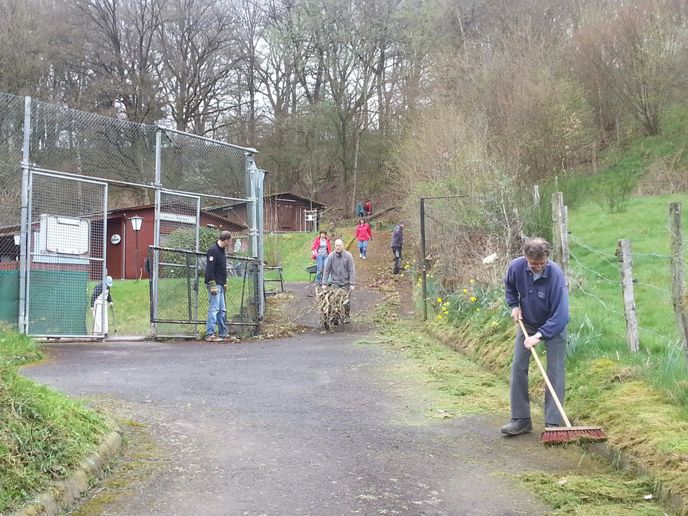 Mit 20 Freiwilligen machte der TV am Samstag, 16.4., klar Schiff rund um das Vereinsheim, damit für das Sommerfest