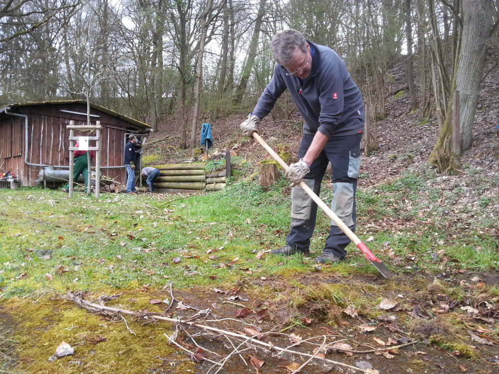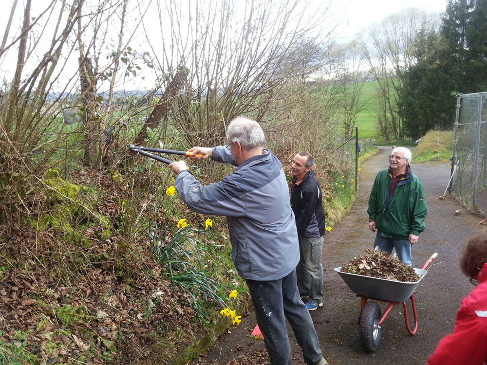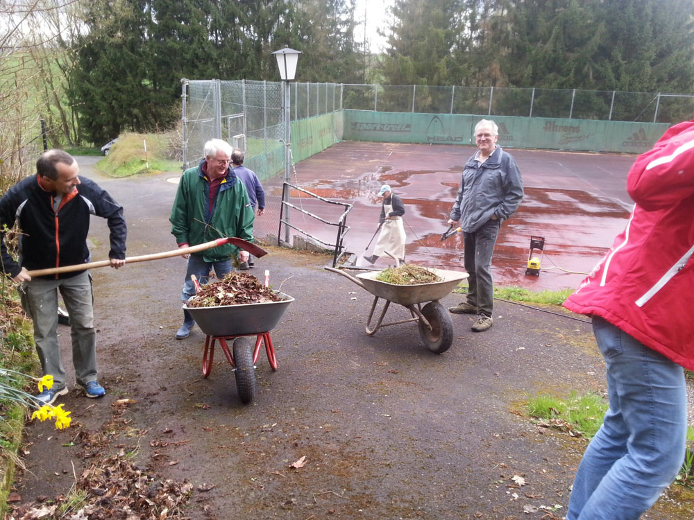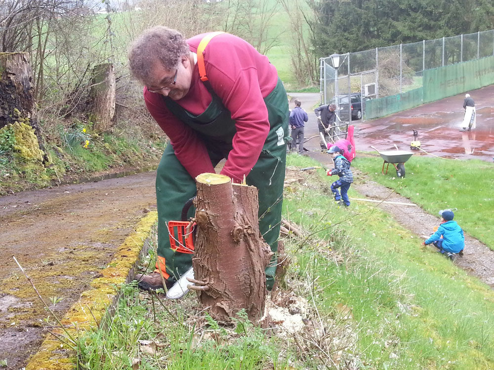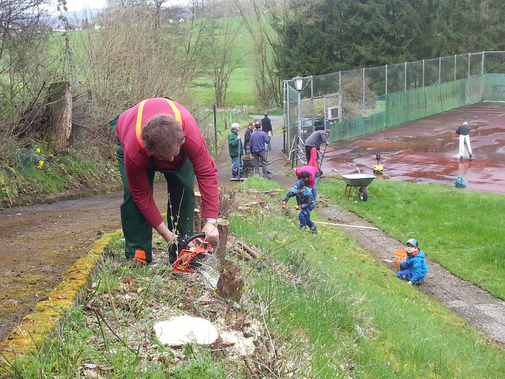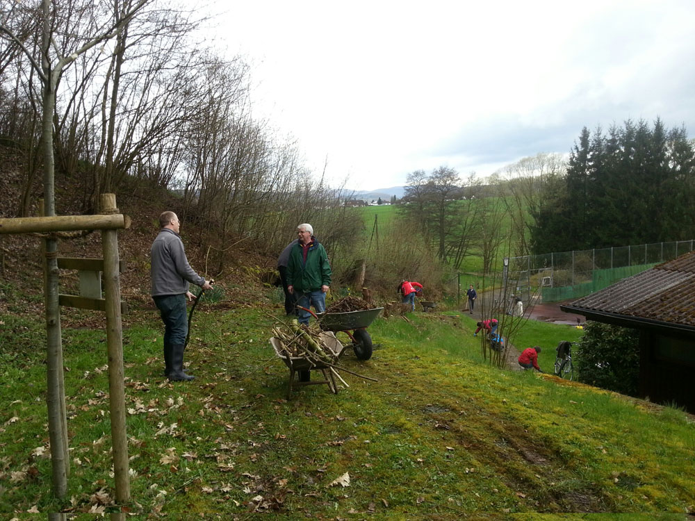 Mit 20 Freiwilligen machte der TV am Samstag, 16.4., klar Schiff rund um das Vereinsheim am Stettebach. Wege wurden bereinigt, Gras gemäht, Baumstümpfe beseitigt, Äste abgefahren, Wege und Platz abgespritzt. Denn für das Jubiläum am 2. Juli 2016, wenn der TV sein 111. Bestehen feiern wird, soll der Platz ordentlich sein. Dank an alle Helfer!