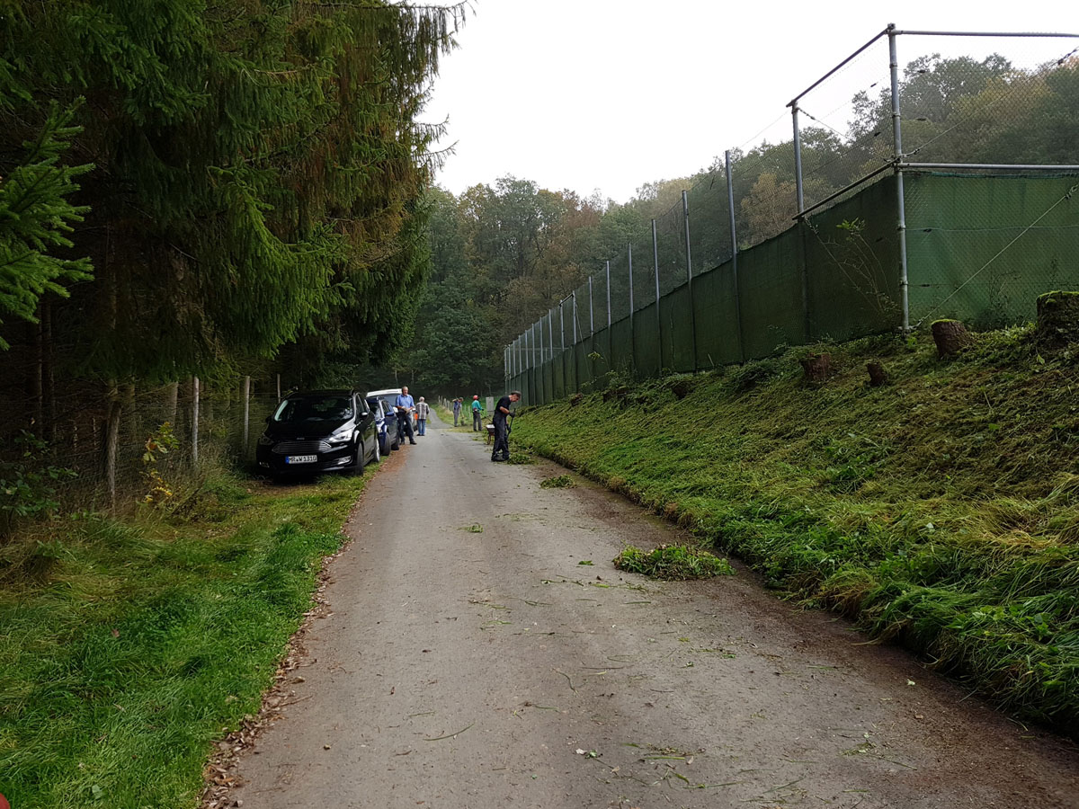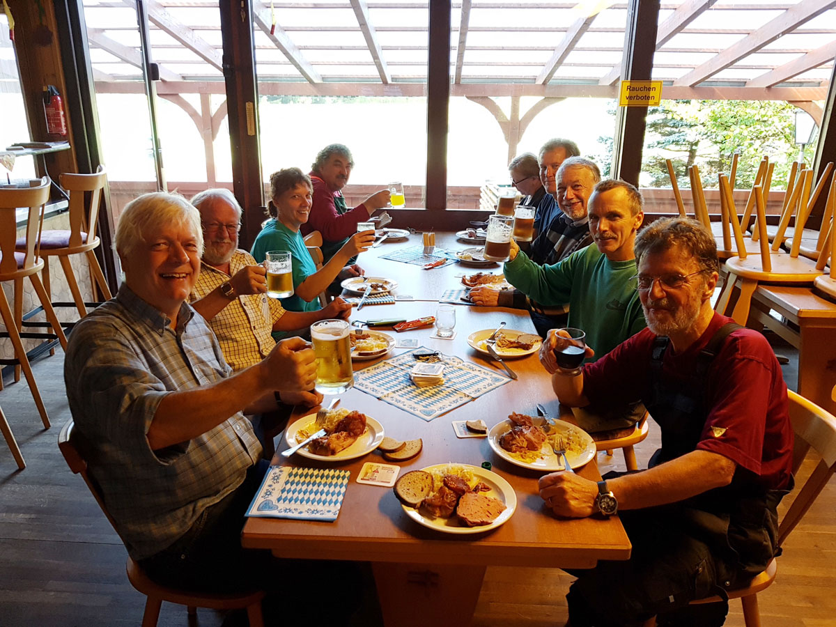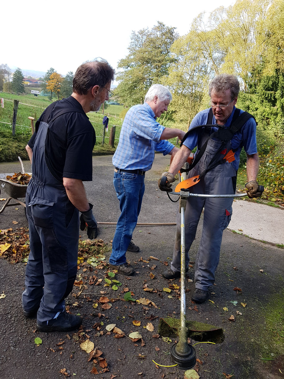 Der Arbeitstrupp nach dem Mähen, Rechen, Hacken, Schneiden, Kehren, Schippen, Abfahren und Abbrennen des Überwuchses rund ums Vereinsheim des TV. |