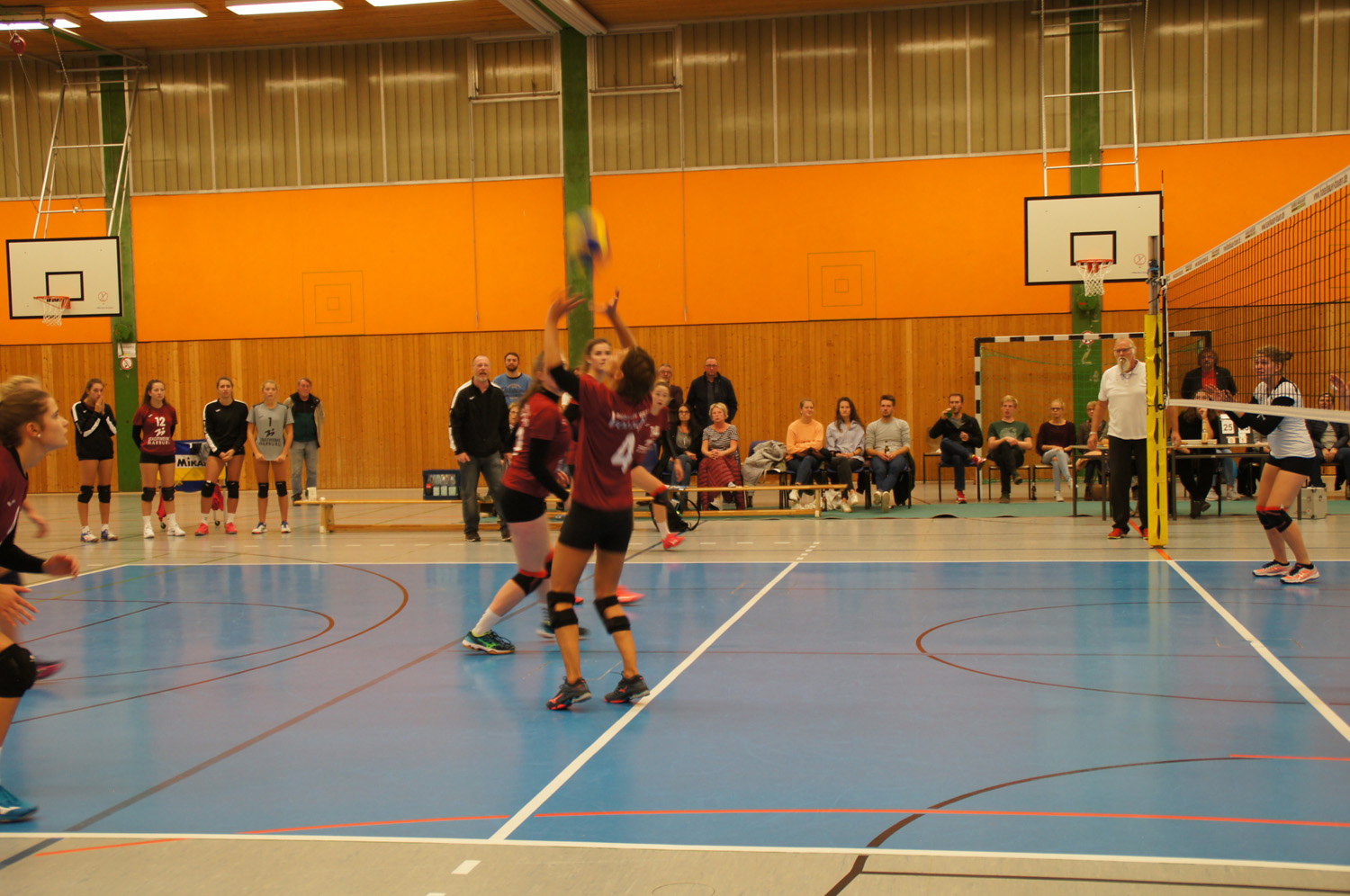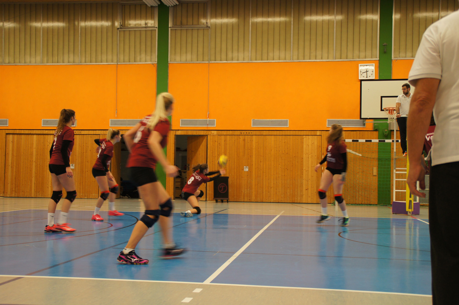 Nun lief es deutlich besser für das Heimteam. Die Annahme hielt. Leonie Sauerwald punktete erfolgreich mit ihren starken Angriffen im Rücken des Zuspielers und Lilli Kreutz sorgte mit starken Aufschlägen für die nötigen Breaks, um sich bis auf 19:13 abzusetzen. Auch die Einwechselung von Emma Bögel brachte im Block gleich Zählbares. Als es gerade richtig rund lief, brachte ein vermeidbarer Ballverlust durch unentschlossenes Handeln in der Feldabwehr gleich wieder Sand ins Getriebe. Eigenfehler auf Seiten der Volleys ließen die Bad Homburger vorbeiziehen und den Satz mit 25:23 gewinnen.