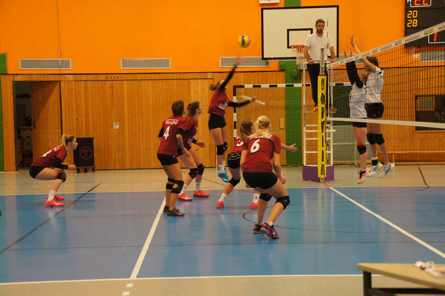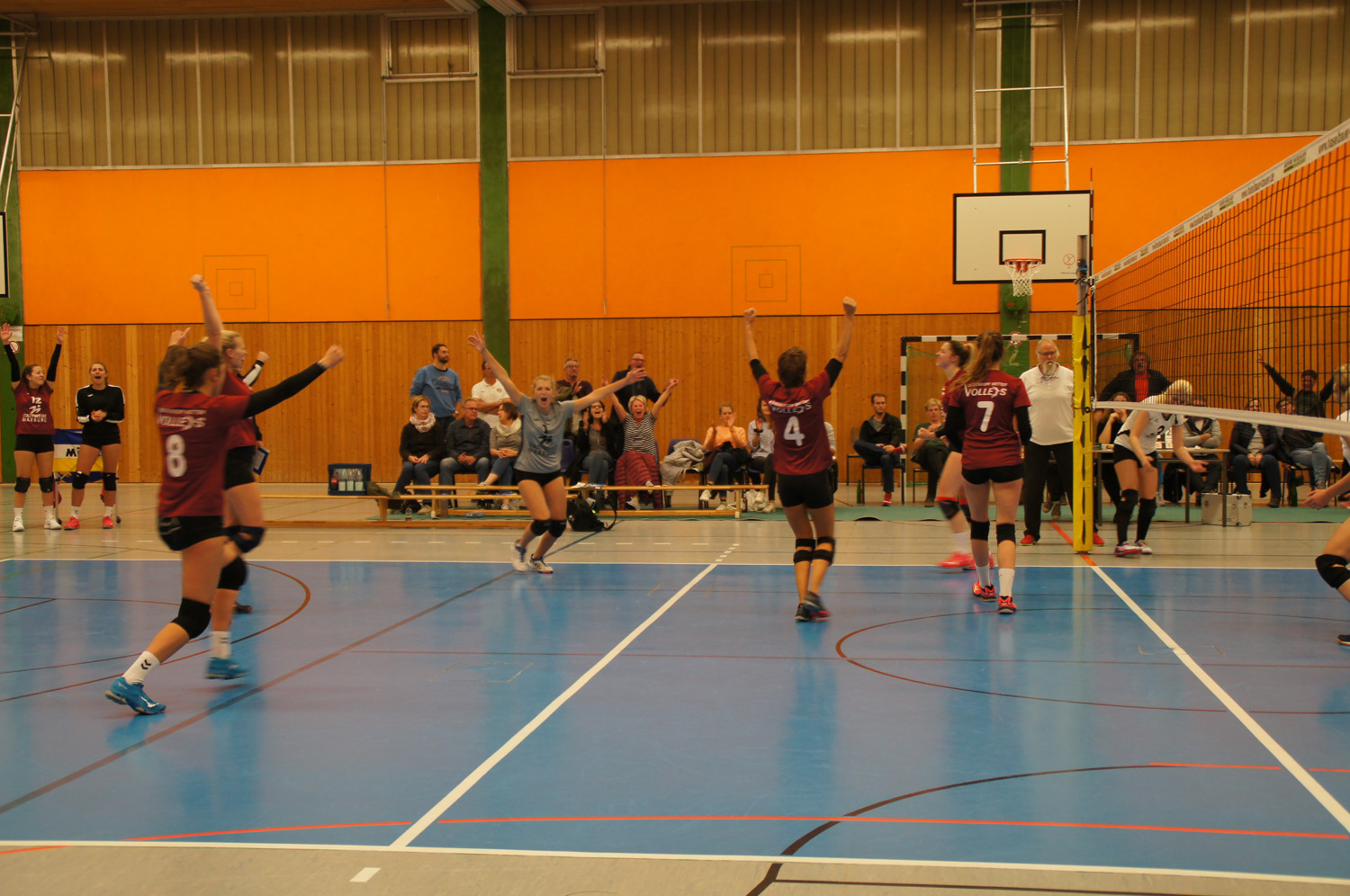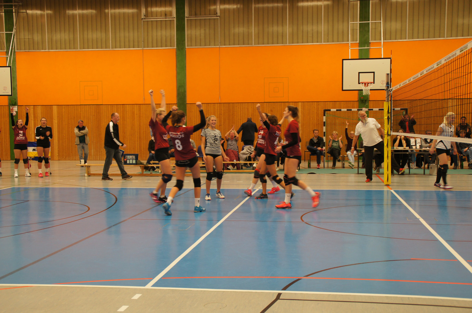 Bereits im ersten Satz offenbarten die neuen jungen Volleys ihre Schwächen in der Annahme, in Angriffssituationen unter Druck und in der Abstimmung der Feldabwehr. Nach dem unvermeidlichen Satzverlust gewannen die Volleys zunehmend an Selbstvertrauen. Angeführt von Mannschaftsführerin Hanna Wecker, die sich in der Annahme breit machte und den Angriff einforderte, bogen die Volleys noch einen 20:24 Rückstand in einen 28:26 Satzgewinn um.