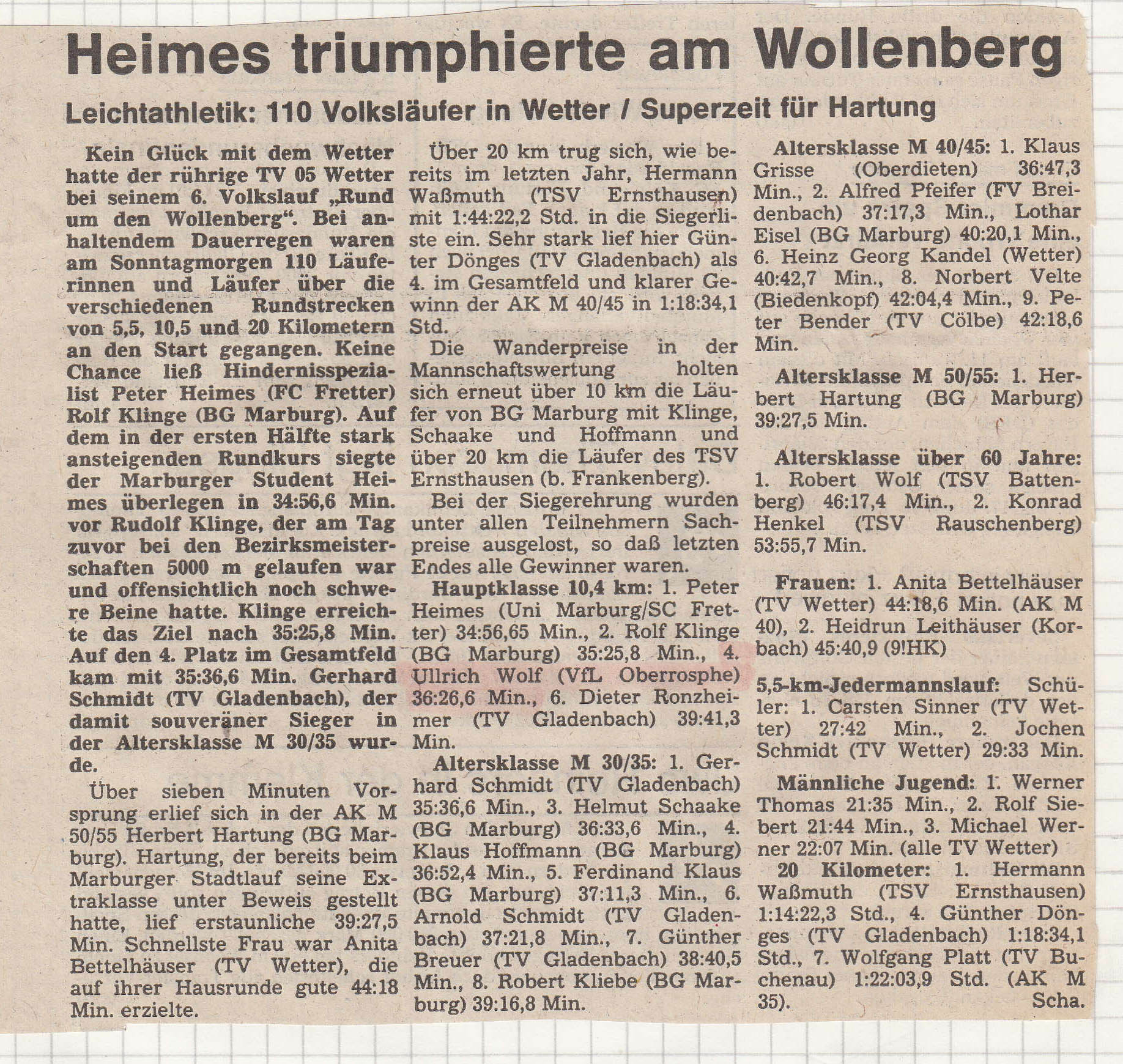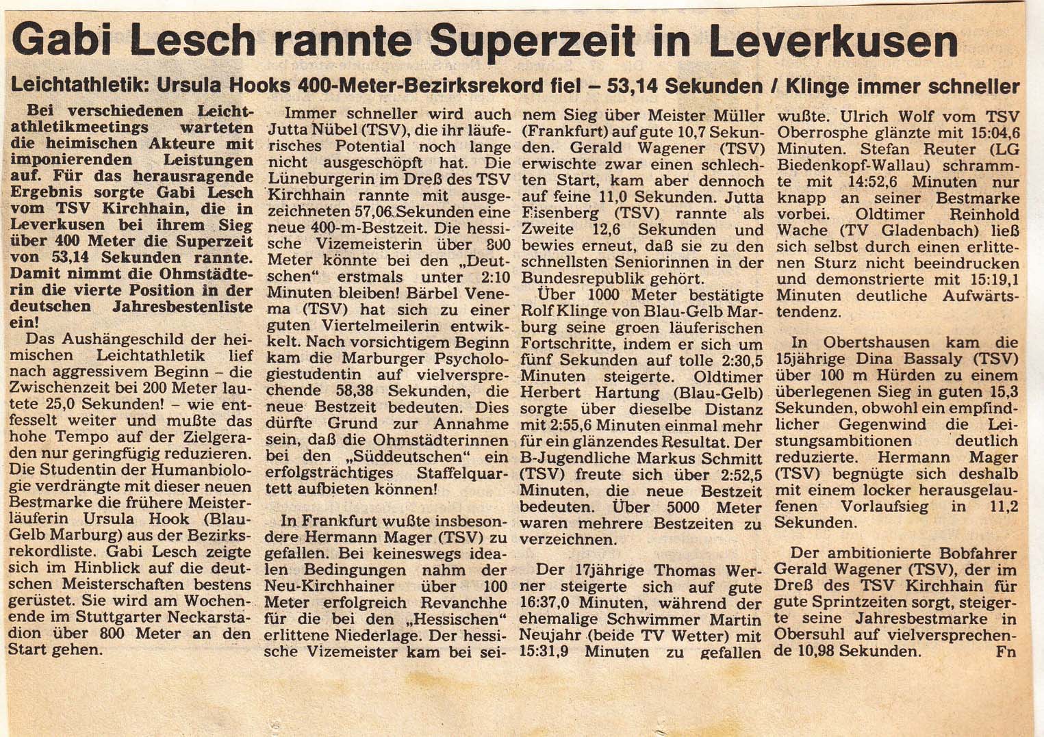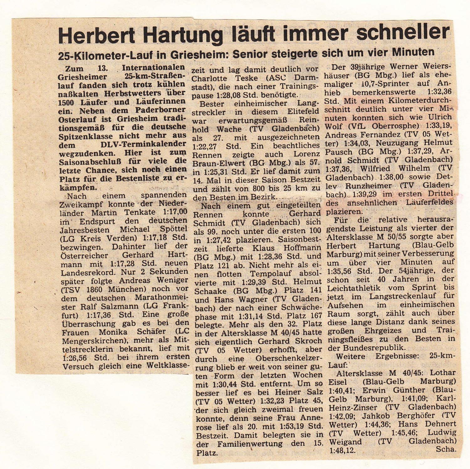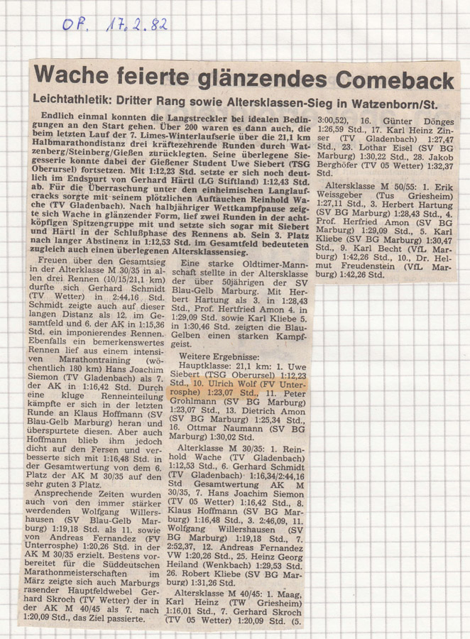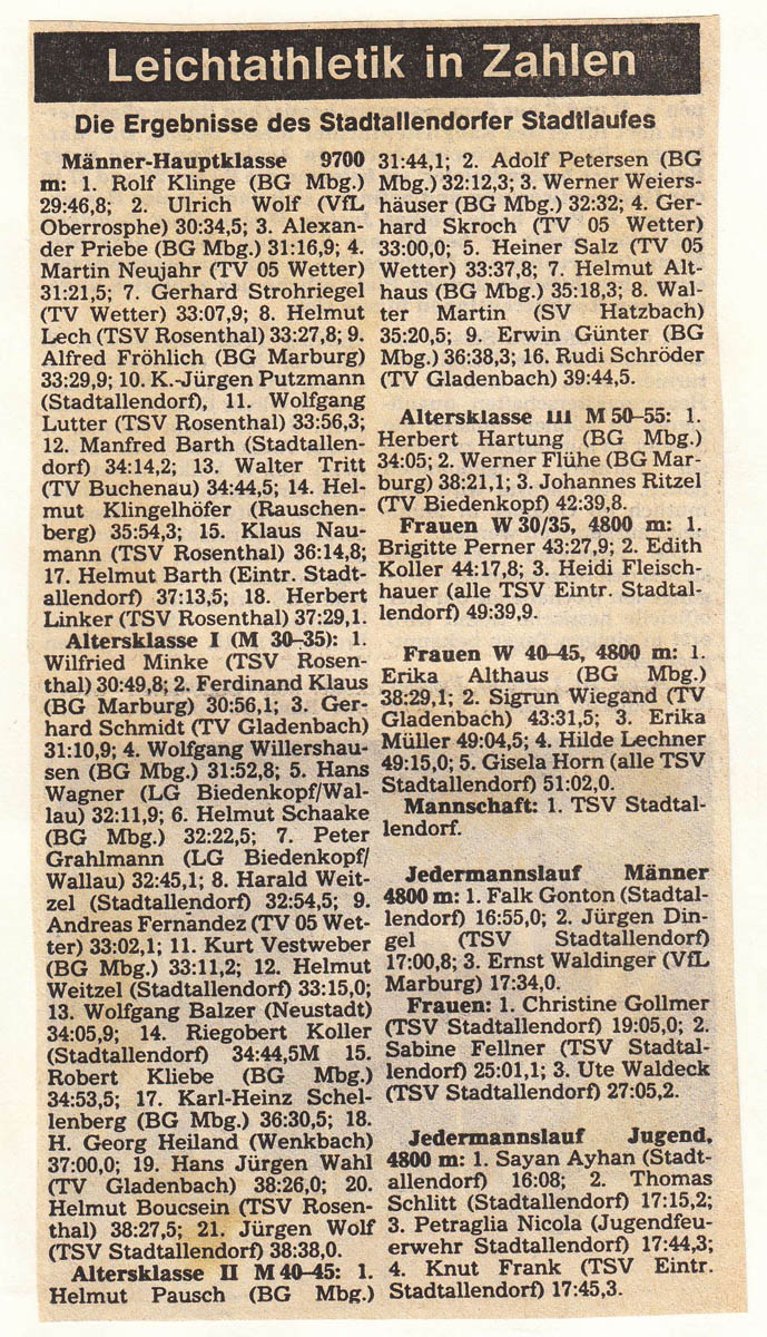 1986: u.a. Wetter - Berlin - Stundenlauf - Stadtallendorf