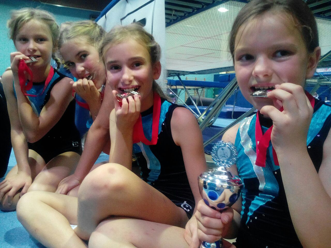 Die Mannschaft um Lea Jesberg, Lina Born, Klara Müller und Lilli Mann konnte bei den Hessischen Mannschaftsmeisterschaften im Trampolinturnen am 30.09.2017 in Frankfurt/Nied den tollen 2. Platz erreichen. Für einige war es die erste Teilnahme an einer Hessischen Meisterschaft. Die Mädels starteten in der Altersklasse 6-11 Jahren.