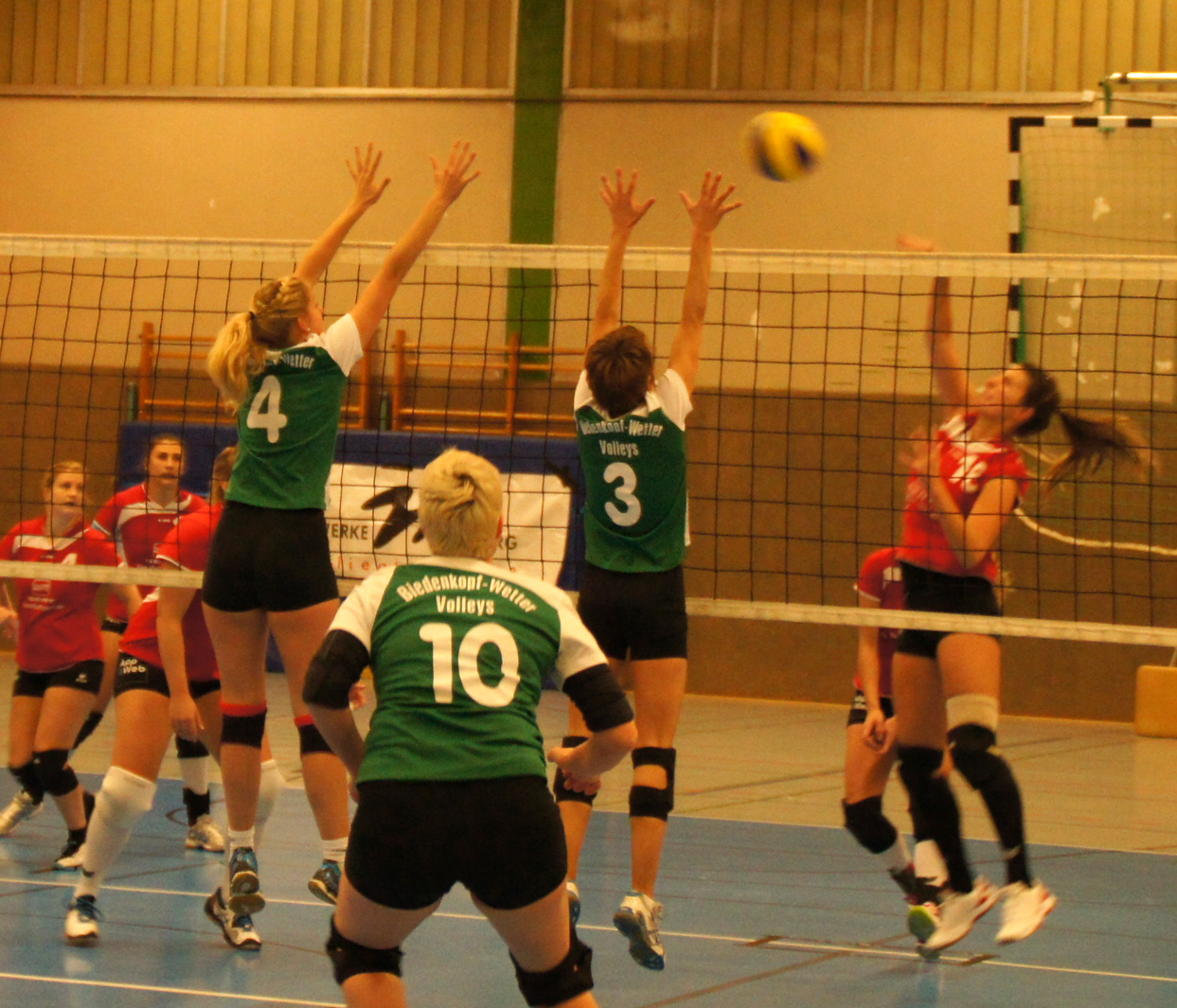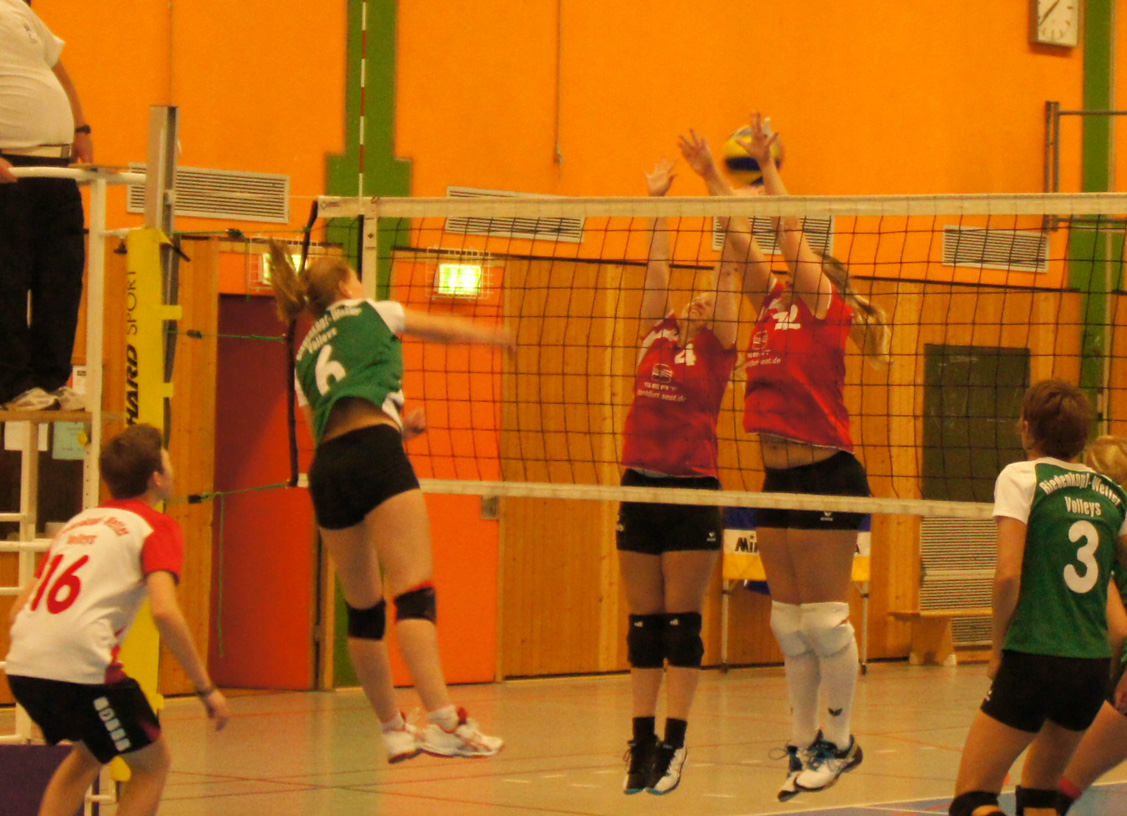 Danach entwickelte sich ein Spiel, das hin und her wogte. Groß Karben konnte den Aufschlagdruck erhöhen und das Tempospiel der Volleys unterbinden. Die Sätze 2 und 3 entschieden die Gäste knapp für sich. Im 4. Satz gelang es wiederum den BW Volleys, mit dem Aufschlag die Angriffsmöglichkeiten des routinierten Karbener Teams in Grenzen zu halten. Hanna Wecker entschied den Satz mit 2 Angriffskrachern zum verdienten 25:23 und damit 2:2 Ausgleich.