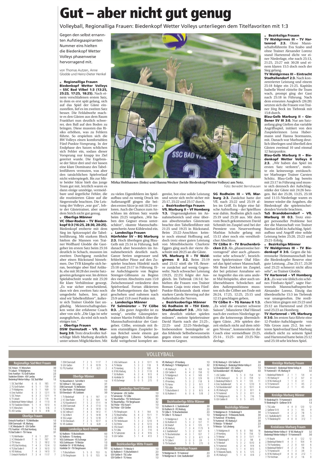 | 3 | Biedenkopf-Wetter-Volleys II | 5 | 3 | 1 | 0 | 1 | 407 | : | 340 | 13 | : | 5 | 11 | |